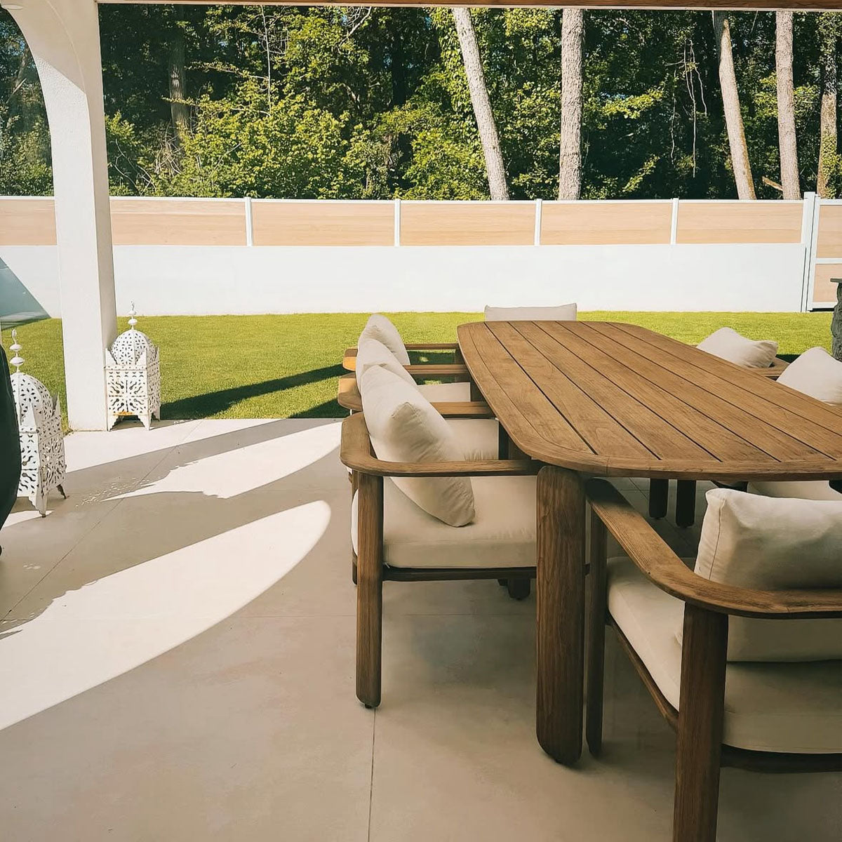 Chez Au Jardin de Chloé, nos mobiliers de jardin haut de gamme sont conçus pour allier esthétisme, confort et durabilité. Que votre mobilier soit en aluminium, en teck, en corde, en résine ou composé de textiles techniques, son entretien reste simple et rapide.