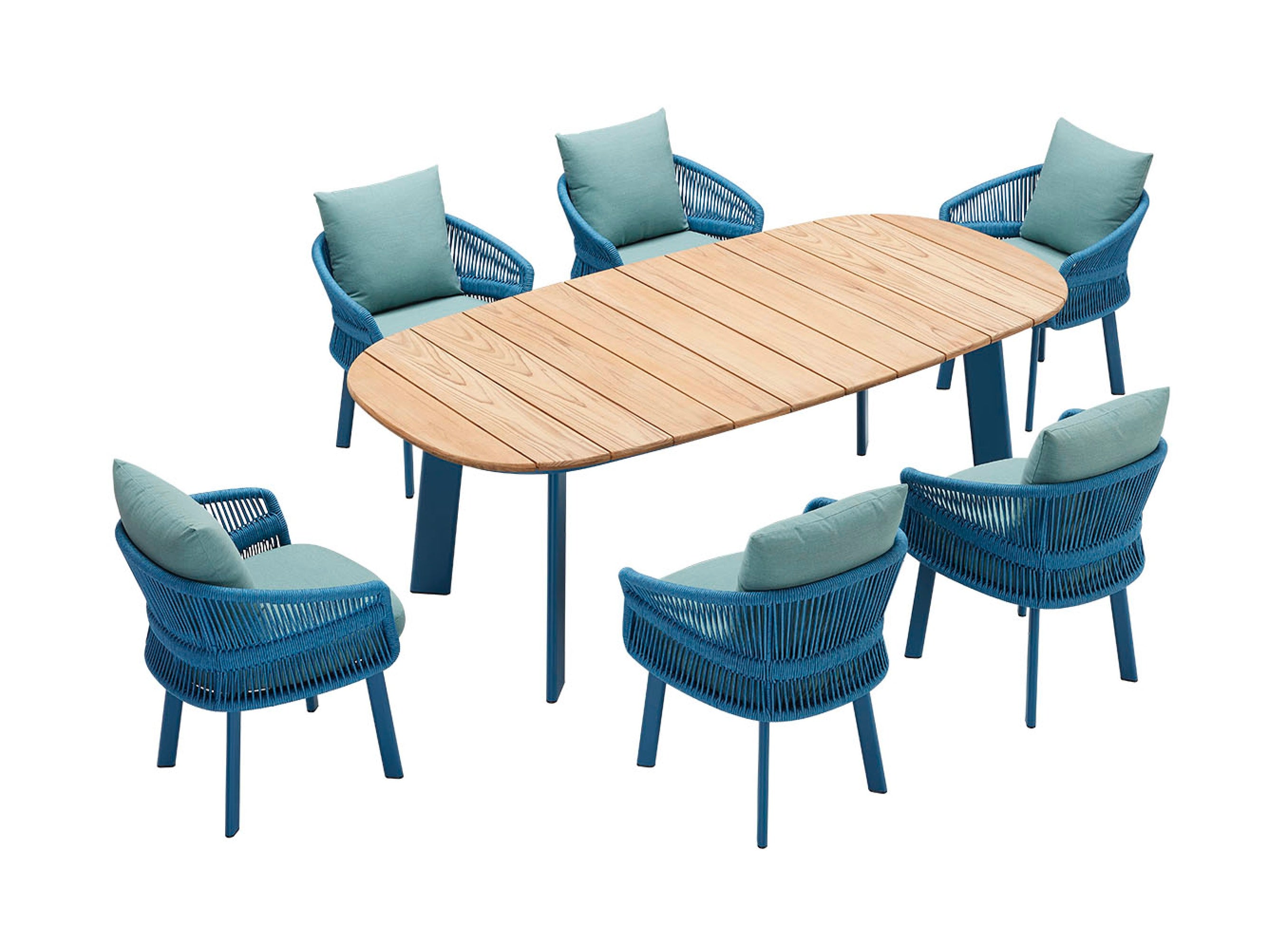 Ensemble repas de jardin luxueux en aluminium et corde tressée 6 places - LASKA