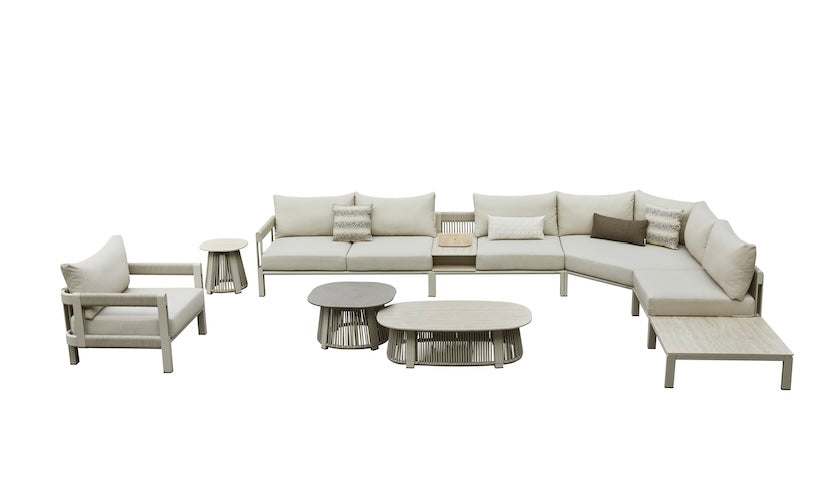 Grand salon d'angle extérieur design en aluminium et corde - MILAN