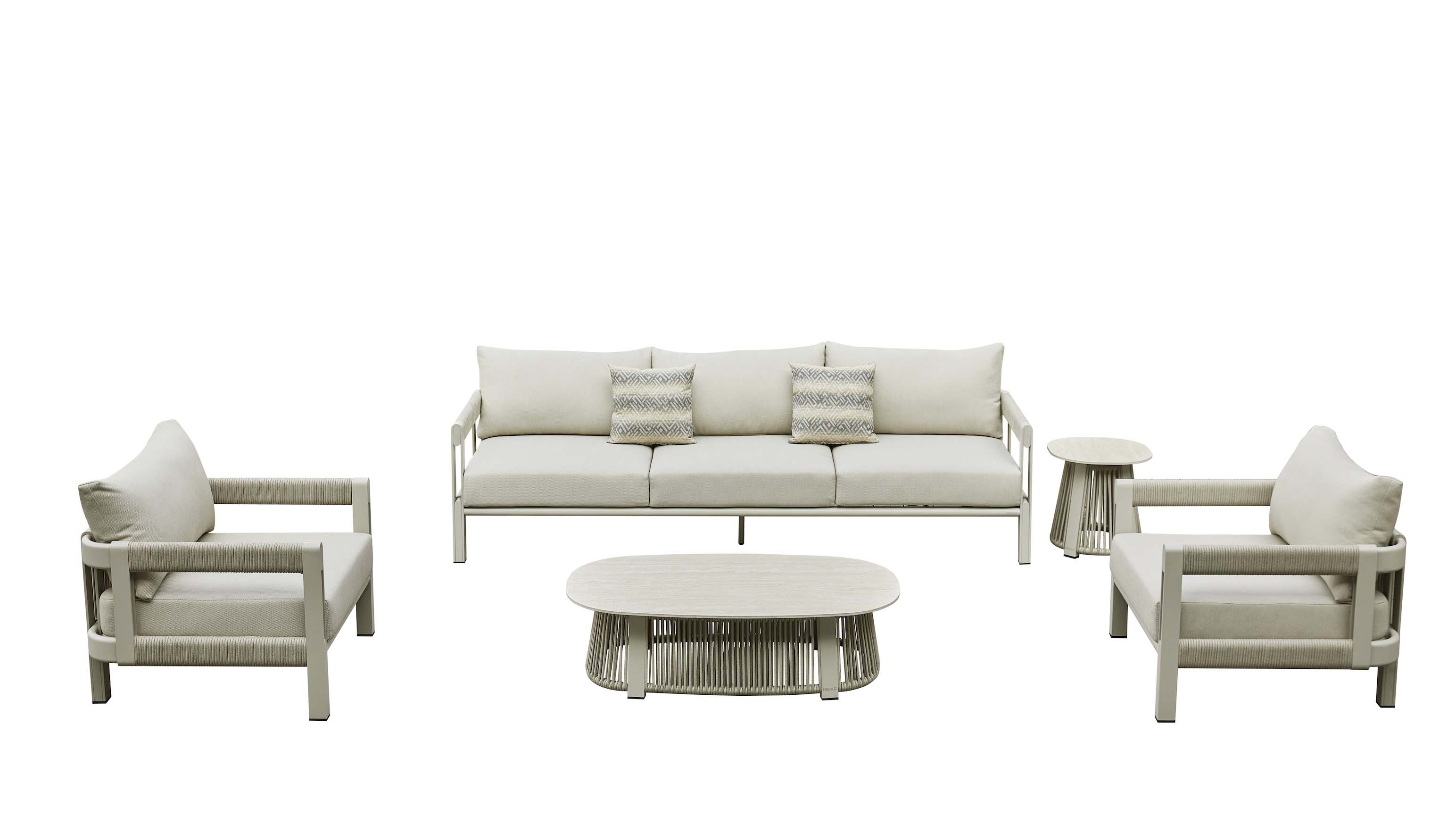 La collection MILAN, est l’alliance parfaite entre l’aluminium thermolaqué beige et la corde tressée, créant un contraste harmonieux entre modernité et chaleur, idéal pour sublimer tout type d’espace extérieur. Ce design raffiné apporte une touche contemporaine tout en conservant une ambiance naturelle et accueillante, propice à la détente et à la convivialité.