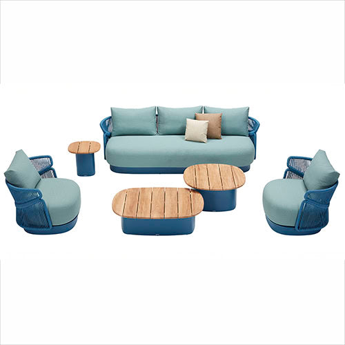 Salon de jardin design luxe en aluminium et en corde tressée - LASKA