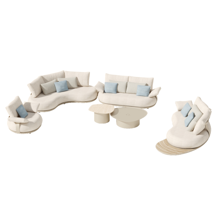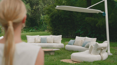 Avec ses formes douces et son agencement atypique, le salon de jardin haut de gamme ELYO XL revisite l'art de vivre en extérieur à travers un design audacieux et résolument italien. La configuration en demi-cercle fluide de cet ensemble de canapé d'extérieur favorise les échanges et le confort, tout en apportant une signature visuelle forte à votre terrasse, patio ou jardin. Ce mobilier de jardin d'extérieur joue avec les volumes pour créer une atmosphère conviviale, graphique et accueillante.